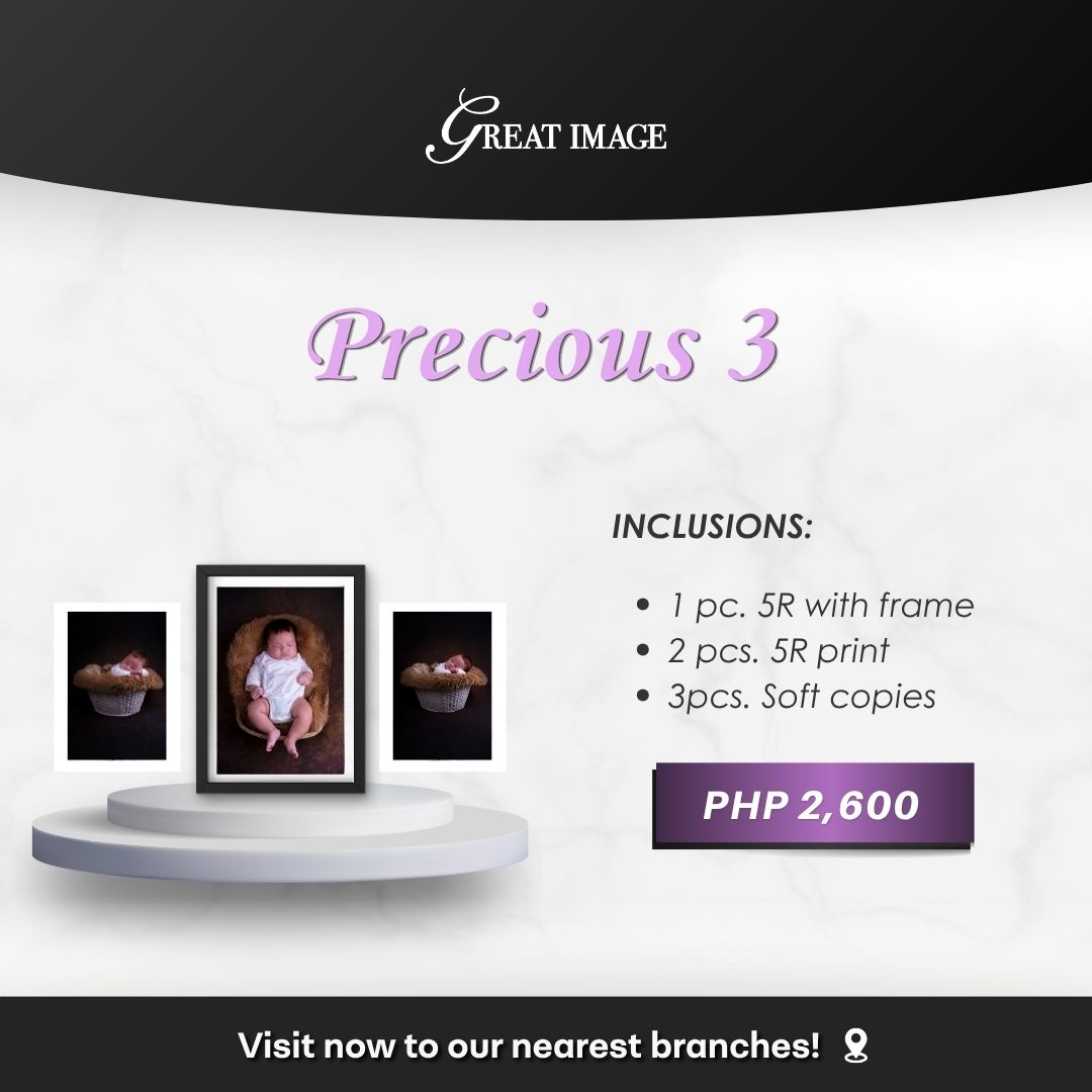 Precious 1: A family of three (3) members (1 family photo, 2 solo with newborn, 2 newborn photos.)